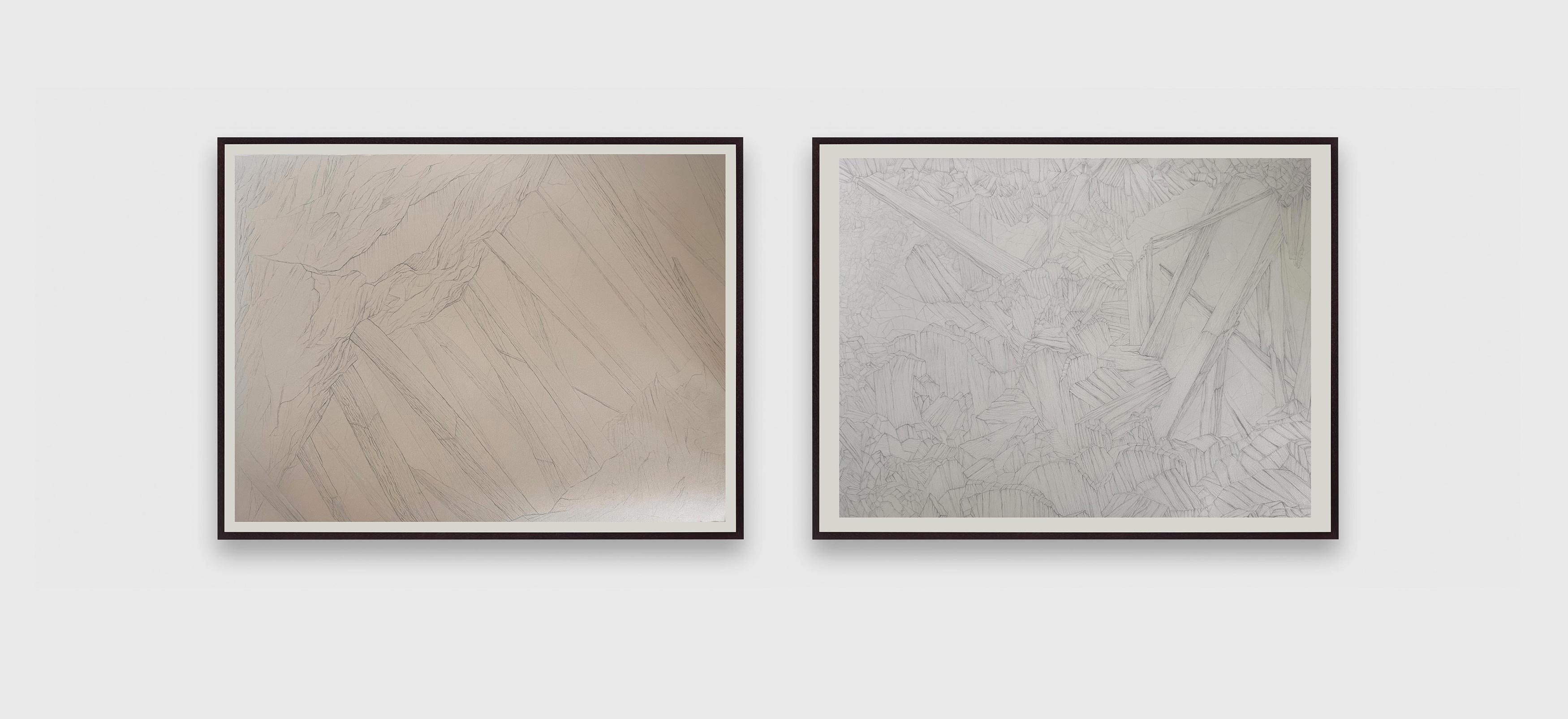 2024, drawing, unique work, 76 x 56 cm / 30 x 22 ¼ inches, each. Medial Xtal Thorax Two drawings, graphite on Rives BFK.