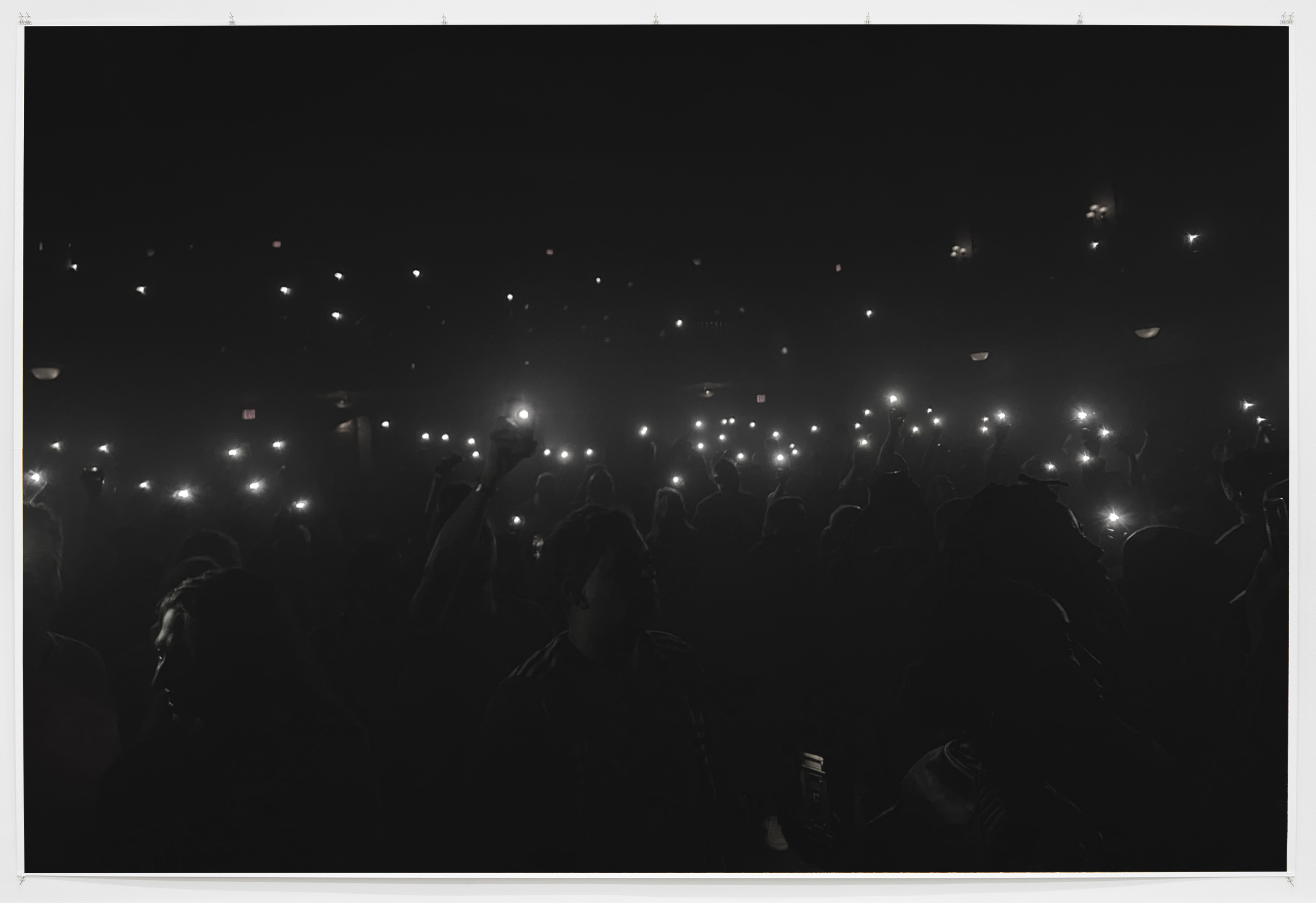 2022, photograph, edition of 5, 410 x 274 cm / 161 ½ x 101 inches. Skyewatch Magnetic tape film, single tube projector, screen, sound.