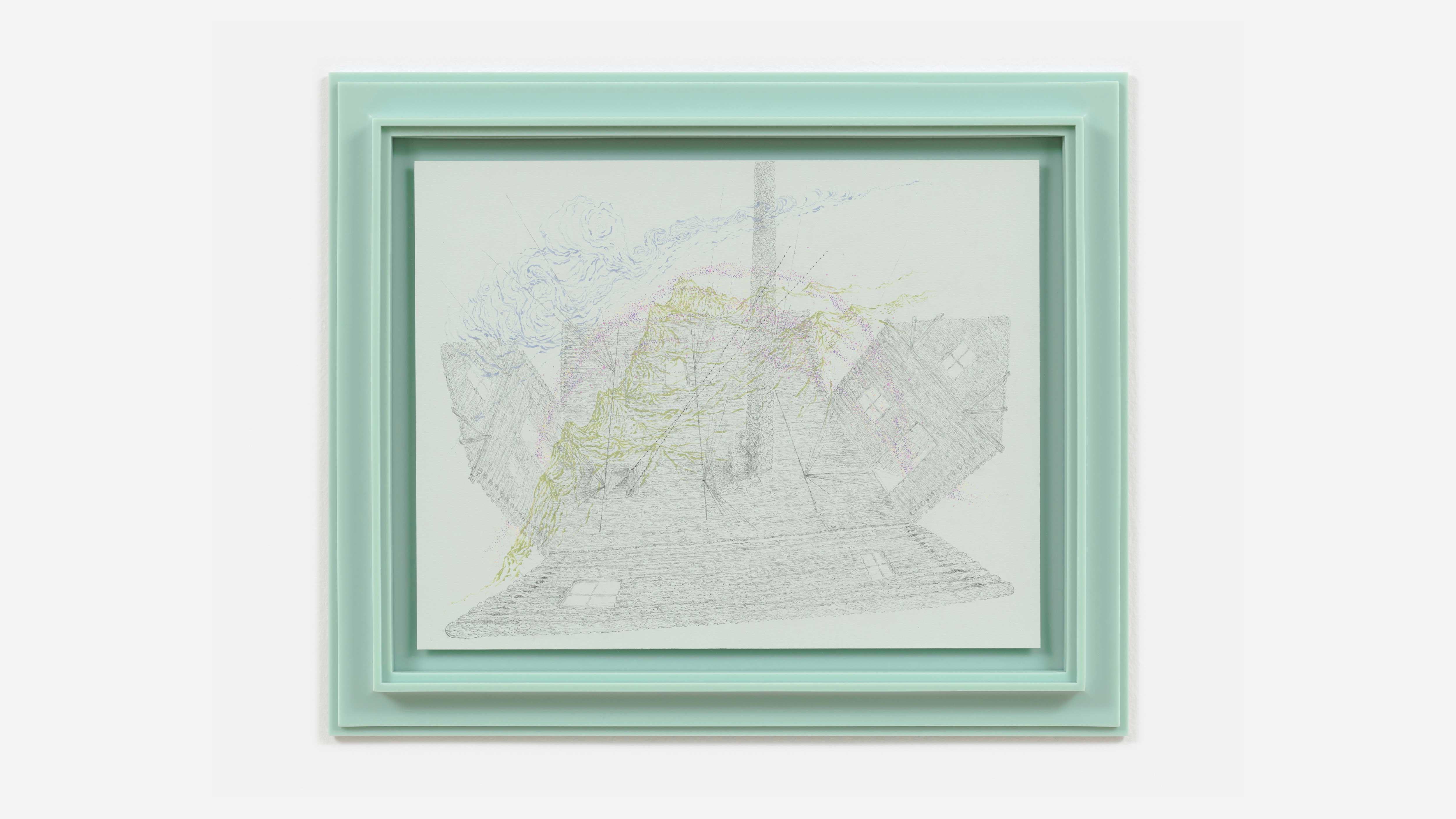 Demdike Stare Graphite, pastel, colour pencil and silver leaf on Arches watercolour, wood frame. Unique work. 20 x 14 ¾ cm, 7 ¾ x 5 ½ inches.